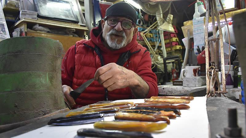 06:53Trabzon Film Festivali'nde Altın Taka Ödülleri sahiplerini bulduKentte Atatürk Caddesi'ndeki atölyesinde 1995’te bıçakçılığa başlayan 8 çocuk babası Erdoğan Güzel, giyimi, sakal yapısı ile çizgi film karakteri Şirin Baba'ya benzerliği ile dikkat çekince işletmesine de bu ismi verdi. Güzel, Türkiye ve Avrupa'da ün kazanan Sivas bıçağının tüm aşamalarını büyük bir özenle yapıyor. Güzel, sapları ahşap ve kemikten olan bıçakların üzerine çeşitli figürler de çiziyor. Özellikle Guinness Rekorlar Kitabı'na girebilmek için ürettiği 1,5-2 santim büyüklüğündeki minyatür bıçaklarla bilinen Güzel, son yıllarda görme kaybına neden olan 'Mekula dejenerasyonu' olarak bilinen hastalığa yakalandı. Elindeki son minyatür bıçakları da kendisinden isteyen kişilere hediye eden Güzel, gözlerindeki rahatsızlık nedeniyle artık minyatür bıçak üretemiyor.