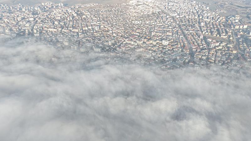 Tarihi Cumhuriyet Meydanı'nda sis altında kalan tarihi yapılarda güzel görüntüler oluştu. Yoğun sis şehrin üzerini de kapladı. Sis tabakası dron ile görüntülendi.