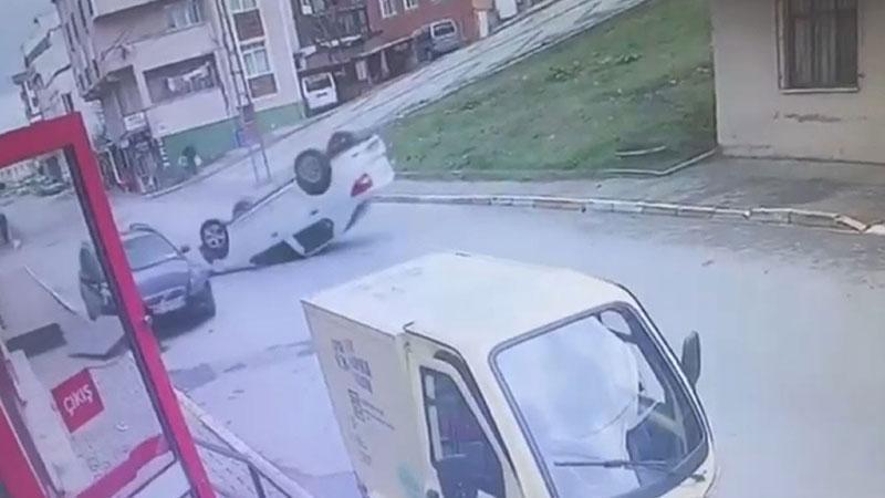 Sultanbeyli'de otomobilin takla attığı anlar güvenlik kamerasına yansıdı.