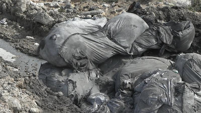 Çevredeki şantiyede çalışan Mahsun Kartal ise, "Sabah buraya iş makinesiyle geldim. Malzeme buradaydı, ben bilmiyordum ham madde olduğunu. Ben de aldım, bu kenara koydum. Sonra biz kokudan duramadık. Yarım saat, bir saat sonra bir daha geldim. Şantiyede hiç duramadık kokudan. Üstünü toprakla kapattım ama halen koku devam ediyordu. 10-15 tane büyük çuval vardı, kenara bıraktım. Üstüne su döktüm halen koku kesilmedi. Yolu kapattığı için kenara aldım. Ben buradan su alıyorum. Şantiyede çalışamıyoruz. Bir an önce bunun buradan temizlenmesini istiyoruz" diye konuştu.