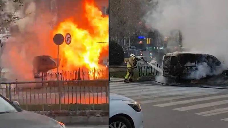 Dumanları fark eden şoförün indiği araç kısa sürede yanmaya başladı. İhbar üzerine olay yerine itfaiye ve polis ekipleri geldi. Alevler itfaiye ekipleri tarafından söndürüldü. Yanan hafif ticari araç ise kullanılamaz hale geldi. Yangın çevredeki kişiler tarafından cep telefonuyla kaydedildi.