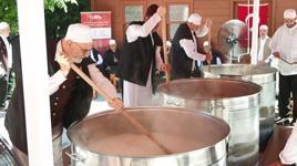 08:38Zeynep ‘evet’dedi, reytingler şahit olduİstanbul'un fethinden sonra Hazreti Hüseyin ve Kerbela şehitleri için Kocamustafapaşa'daki Sümbül Efendi Tekkesi'nde başlatılan aşure kaynatma geleneği, İnsan ve İrfan Vakfı tarafından devam ettiriliyor. Yıllar sonra aslına uygun olarak 2012 yılında yeniden başlatılan ve bu yıl 14'ünücüsü gerçekleştirilen etkinlikte Mevlid-i şerif, dualar ve zikirler eşliğinde aşure pişirildi. İlk tarife uygun olarak hazırlanan aşure için kullanılan 3 ton ürün, bir gün önce 7 kere yıkanıp dualarla dinlendirildi. Dualar eşliğinde kaynatılan aşure 10 bin kişiye dağıtılacak.