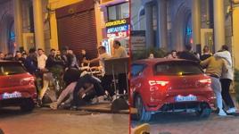 Kavga anları ise cep telefonuyla kaydedildi. Görüntülerde, iki grubun birbirlerini darbetmesi görülüyor. Bir kişi yere düşmesine rağmen tekme ve tokatlarla darp edilmeye devam ediliyor. Çevredekiler ise yaşanan kavgayı izliyor. Bir süre sonra taraflar olay yerinden uzaklaşıyor.
