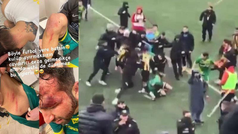 02:09Sarıyer’de ruhsatsız oto tamirhanesi alev alev yandıBeykoz 1908 ile Ayazağaspor dün saat 14.00’de oynanan Süper Amatör Lig 5. Grup 16. Haftası maçında karşı karşıya geldi. Maç, Beykoz 1908'in 2-1’lik galibiyeti ile sona erdi. Maç sonunda Beykozlular galibiyet sevincini yaşarken, iki takımın oyuncuları arasında henüz bilinmeyen nedenle tartışma çıktı. Tartışmanın büyümesiyle çıkan kavgaya, tribünde takımlarına destek olan Beykozlu taraftarlar da sahaya inerek dahil oldu. Sahada görevli polislerin müdahalesiyle kavga son bulurken, çok sayıda oyuncu yaralandı. O anlar cep telefonu kamerasına saniye saniye yansıdı.