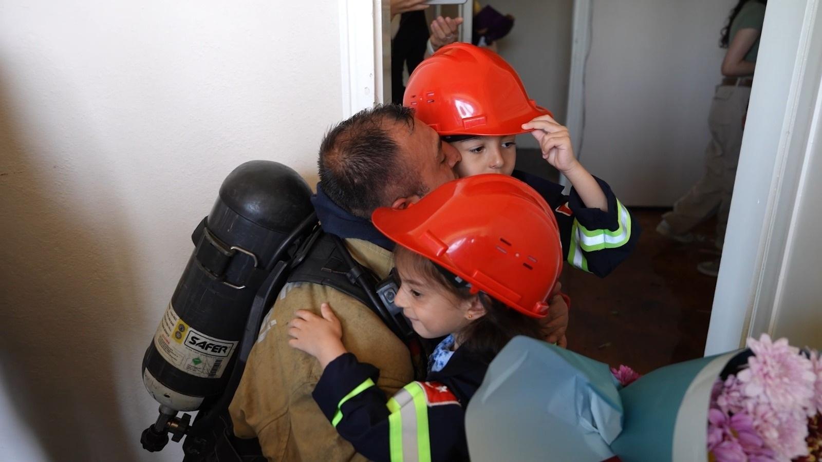 İtfaiye eri Hüseyin Demircan, "En mutlu olduğum Babalar Günü oldu diyebilirim. Çocuklarımın fotoğraflarını gördüğümde şok oldum. Böyle bir sürprizle karşılaşacağımı hiç bilmiyordum" dedi.