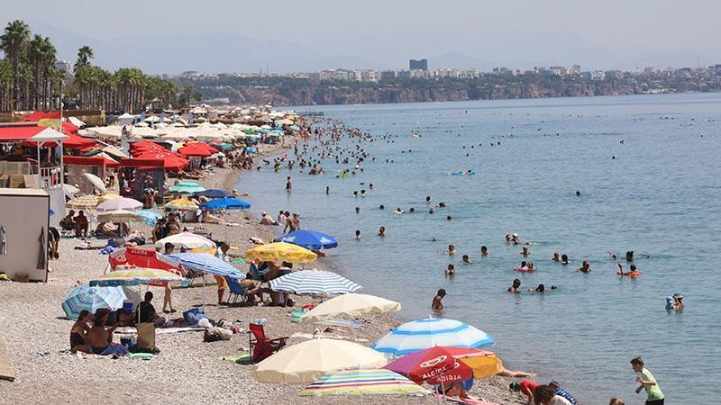 Antalya'da mevsim normallerinin üzerinde seyreden hava sıcaklığı 43 dereceyi aşınca yerli ve yabancı tatilciler soluğu sahillerde aldı. Tatilciler, su sıcaklığı 31 derece ölçülen denizde serinlik aradı.