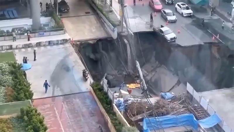 Tayland'ın başkenti Bangkok'un Dusit bölgesinde yer altı inşaatı devam eden bir yolda yerel saatle 07.00'de çökme meydana geldi. Yetkililer, yolda yaklaşık 30 metre genişliğinde ve 50 metre derinliğinde çukur oluştuğunu ve bir aracın çukura düştüğünü belirtti.