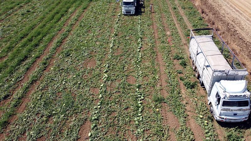 Tekirdağ'ın Marmaraereğlisi ilçesindeki Türkmenli Göleti'nde, aşırı sıcaklar ve yetersiz yağışlar nedeniyle su seviyesinin düşmesi, karpuz üretimini de etkiledi. Karpuz üreticisi Volkan Kurt, "Sıcaklar bastırdı, hem iklim şartları hem su olmayışı çok büyük zararlara uğrattı. Geçen yıl aşağı yukarı 3 bin dönüm karpuz eken vardı. Bu sene 1000 dönüm civarı var ve gittikçe de düşüyor" dedi.