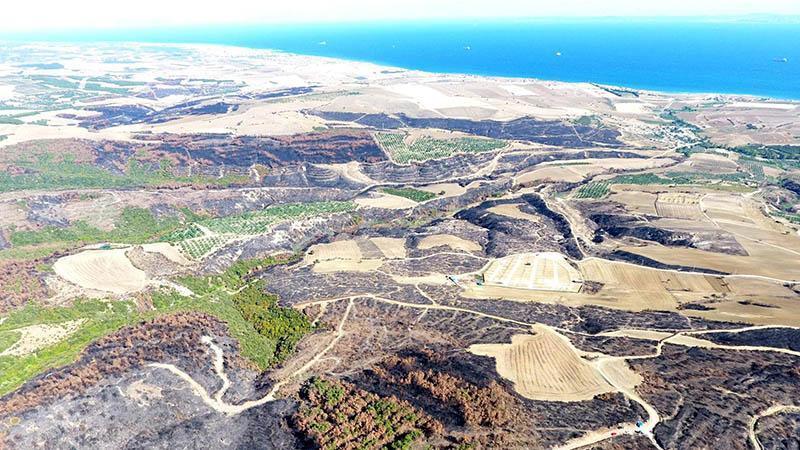 Tekirdağ'da yanan orman temizleniyor, kesilen ağaçlar istifleniyor