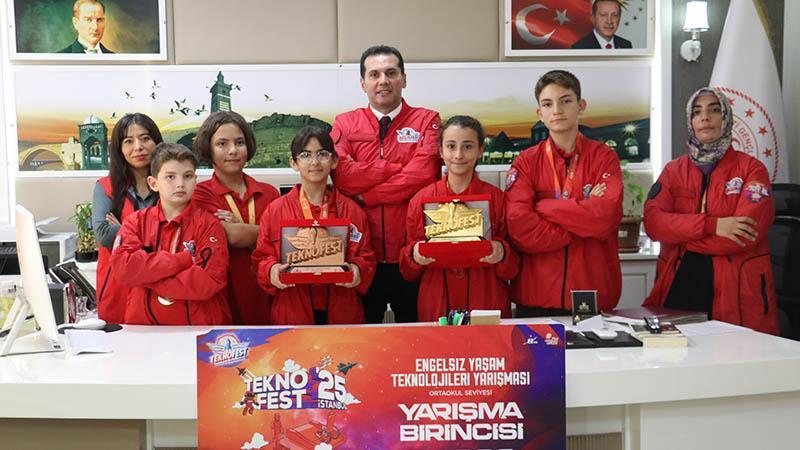 6’ncı sınıf öğrencisi Mahmut Sami Menteş ise “1’inci olduğumuz zaman mutlu olduk. Plaka sistemimiz, yapay zeka desteklidir. ‘Plaka Tanıma Sistemi’ sayesinde engelli bireylerin araçlarında bulunan plakadaki logoyu okuyup, bu sayede bariyerlerimizi açabiliyoruz. Jürilerimize karşı bu sayede en iyi sunumu ve 1’incilik ödülünü kazandık” dedi.