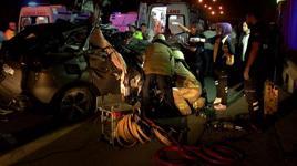 00:36Kırmızı ışıkta bekleyen otomobile arkadan gelen otomobil çarptı; kaza kameradaKaza, saat 01.30 sıralarında Kağıthane TEM Otoyolu Hasdal mevkisinde meydana geldi. Edirne istikametine seyir halinde olan Batuhan Gökçe yönetimindeki 34 GZN 377 plakalı cip, yolda makas atarak hızlı bir şekilde ilerlerken, sağ şeritte giden 34 HBU 437 plakalı hafriyat kamyonunun arka kısmına çarpıp savruldu. Çarpışmanın etkisiyle motoru kopan cipin içinde yolcu koltuğunda oturan Doğukan Kişi, aracın içinde sıkıştı.