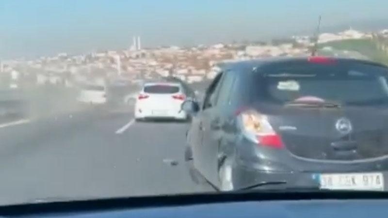 TEM Otoyolu'nda 6 aracın karıştığı zincirleme kazanın olduğu an, bir sürücü tarafından cep telefonu ile görüntülendi. Görüntülerde, yolun sol şeridindeki lastik parçasına çarpan 34 CGK 974 plakalı otomobilin sağ şeride geçerek aniden durması ve diğer araçların duran otomobile çarpmamak için ani manevra yaparak kaza karışması yer alıyor.