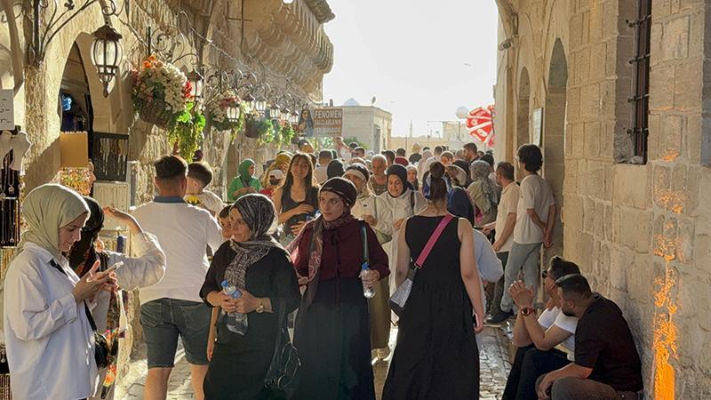 01:4362 yaşında Türk vatandaşlığına geçti, askere çağrıldıKentte, 12 bin yıllık tarihi geçmişe sahip, birçok medeniyete beşiklik eden ve 2021’de UNESCO Dünya Miras Geçici Listesi'ne dahil edilen Midyat ilçesi için Meteoroloji 15’inci Bölge Müdürlüğü, ‘mevsim normallerinin üzerinde sıcaklık’ uyarılarında bulundu. Termometrelerin 40 derecenin üzerinde gösterdiği ilçe, sıcak havaya rağmen turistlerin akınına uğradı. İlçeye gelen yerli ve yabancı turistler, tarihi kiliseleri, camileri ve konakları gezdi, Süryani telkari ustalarının bulunduğu gümüşçüler ve yöresel ürünler çarşısından alışveriş yaptı. Bazı kadın turistler, tarihi taş evlerin önünde şal bağlayıp kına yakarak selfie çekti. Midyat Belediyesi Turist Rehberi Şehmus Yıldız, gelenlerin sıcak havaya aldırış etmediğini ifade ederek, “Gelenler tarihi hissetmek, bu atmosferi yaşamak istiyor. Sıcak hava da bu otantik deneyimi daha da pekiştiriyor. Havaların sıcak olması gerçekten etkilemiyor turistleri. Şu anda sıcaklık 45 derece var ancak insanlar sıcağa ve soğuğa bakmıyor. Buraların tarihi, kültürü ve coğrafyasıyla tanışıyorlar” dedi.