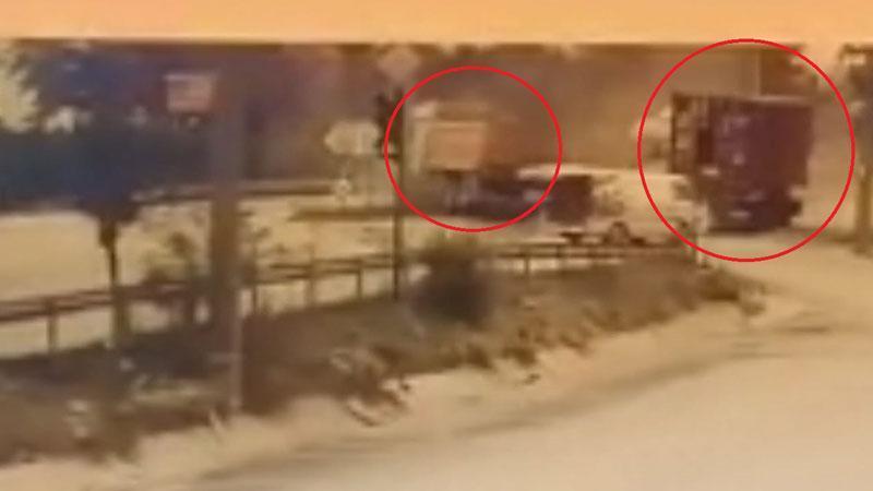 Çevredeki iş yerinin güvenlik kamerasına da yansıyan kaza sonrası TIR ve kamyon, çekiciyle yoldan kaldırılırken, jandarma da inceleme başlattı.