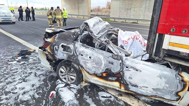 13:11Çöp poşetinde cesedi bulunan Sümeyye’nin eşi, bindiği taksiyi bulup cinayetin işlendiği siteye gitmişKaza, saat 12.30 sıralarında Ankara Çevre Yolu Yakupabdal Mahallesi yakınlarında meydana geldi. Gölbaşı yönüne giden K.B. yönetimindeki 06 CUU 376 plakalı otomobil, aynı yöne giden 42 ACA 756 plakalı TIR'a arkadan çarptı. TIR'ın ardında yaklaşık 70 metre sürüklenen otomobil, alev alarak yanmaya başladı.