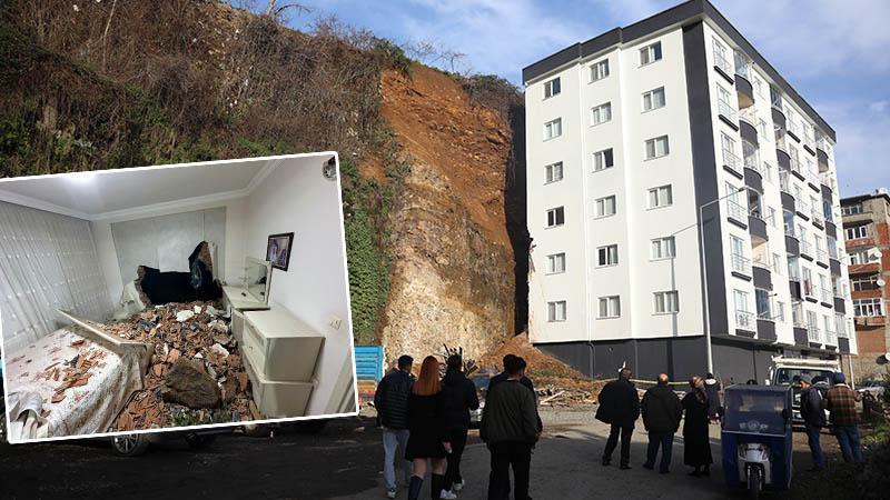 Trabzon'un Vakfıkebir ilçesinde dik yamaçta meydana gelen heyelan nedeniyle 6 katlı binanın giriş katlarındaki odalar, kaya ve toprak yığınıyla doldu. Risk nedeniyle bina tahliye edildi.