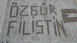 Traktör ile tarlalarına 'Özgür Filistin' yazdılar