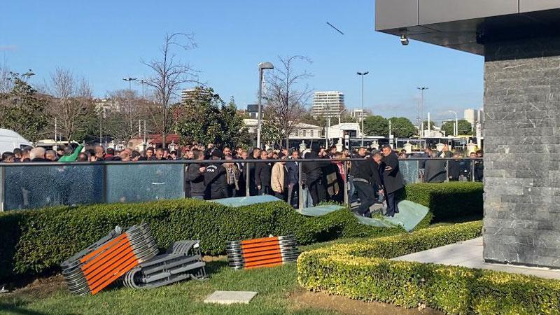 UKOME toplantısından alınan zam kararının ardından kapı önünde bekleyen taksiciler toplantının yapıldığı binaya girmeye çalıştı. Taş ve sopalarla binaya saldıranlara polis müdahale etti. Gözaltına alınanlar var.