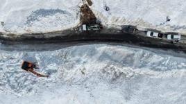 02:39Avcılar'da karlı havaya aldırış etmeden köpeğiyle beraber denizde yüzdüKentte 1 hafta boyunca aralıkla etkili olan kar yağışı sonrası Van-Çatak kara yoluna 6 gün önce çığ düştü. Kapanan yolun açılması için Karayolları 11’inci Bölge Müdürlüğü’ne bağlı karla mücadele ekipleri, yoğun çalışma yürütüyor. 3 iş makinesiyle yapılan çalışmalar sonrası kara yolu, dün tek şeritten ulaşıma açıldı. Yolun çift şeritten açılması için de Karayolları ekipleri, yoğun şekilde çalışmaya devam ediyor. Çığ bölgesinde yer yer 7 metreyi bulan kar kütleleri arasında, kar savurma makinesinin yol genişletme çalışmaları dronla görüntülendi. (DHA)