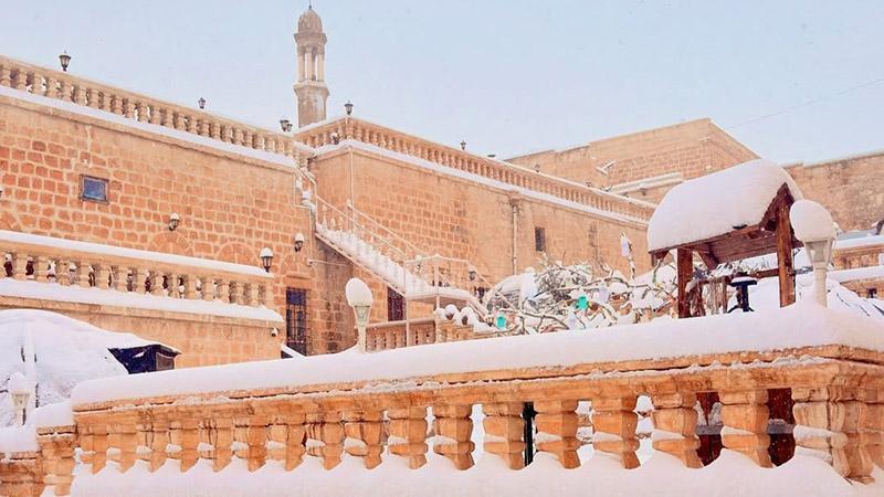 Tarihi dokusuyla büyüleyen Mardin, bu kez bembeyaz örtüsüyle göz kamaştırdı.