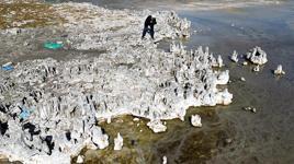 08:01Hidayet Türkoğlu sağlığın ve sporun zirvesine konuk olduDünyanın en büyük sodalı, Türkiye'nin ise en büyük gölü olma özelliği taşıyan ayrıca dünyanın en büyük mikrobiyalitlerini içinde barındıran Van Gölü, küresel iklim değişikliği ve buna bağlı olarak yaşanan kuraklık ve aşırı buharlaşma nedeniyle alan kaybetmeye devam ediyor. Sudaki çekilme nedeniyle gölün Erciş ilçesi kıyıları, tuz ve soda kalıntılarıyla beyaza bürünürken, çekilmeyle birlikte gölde bulunan ve daha önce sular altında olan mikrobiyalitler de su yüzüne çıktı. Göl tabanındaki çatlaklardan çıkan kalsiyum açısından zengin yeraltı sularının göldeki karbonat iyonlarıyla etkileşmesi ve bu süreçte siyanobakterilerin biyokimyasal faaliyetleriyle desteklenmesi sonucunda, kayaç benzeri yapılar olan mikrobiyalitler artık karada görünür hale geldi.