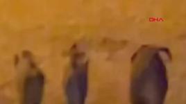 Doğal ortamlarında yiyecek bulamadıkları tahmin edilen yaban domuzları, dün gece saatlerinde İnkumu tatil beldesinde görüldü. Aralarında yavruların da bulunduğu sürü, piknik ve mesire alanı çevresinde çöpten yiyecek aradı. Daha sonra kumsala inen domuzların, denize girerek su içtikleri görüldü. Çevredekiler tarafından cep telefonuyla kaydedilen domuzlar, denizden çıkarak ormana gidip gözden kayboldu.