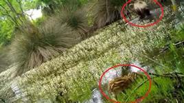 Görüntülerde longozda dolaşan ve göllerden su içen yaban domuzu yavruları yer aldı.