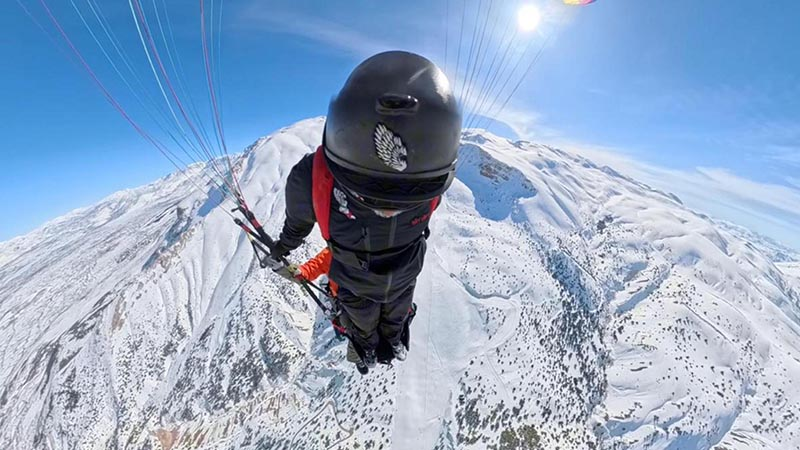 Türkiye ve dünyanın farklı ülkelerinde wingsuit atlayışları yapan Cengiz Koçak, yamaç paraşütü sporcusu Emre Aktepe ile Ergan Dağı’nda base jump atlayışı gerçekleştirdi. Telesiyej sistemiyle merkezin zirve noktasına çıkan sporcular, buradan yamaç paraşütüyle havalandı. Koçak, yaklaşık 500 metre yükseklikten kendini boşluğa bırakarak base jump atlayışı yaptı. Aksiyon kameralarıyla kaydedilen atlayışlar izleyenlere heyecan dolu anlar yaşattı.