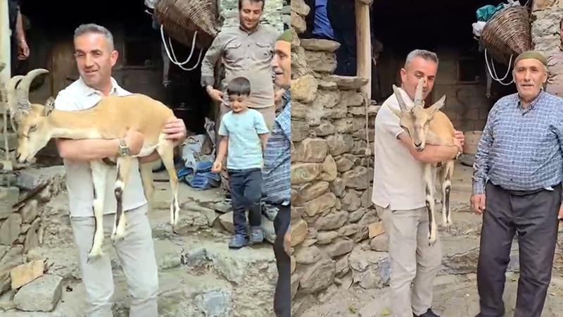 Yaylada bitkin halde bulunan dağ keçisi, bakıma alındı