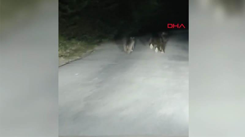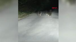 Ulus ilçesine bağlı Ulukaya köyünde, yola inen bozayı ve yavrusu bir otomobil sürücüsü tarafından cep telefonu ile görüntülendi. Yaklaşık 50 metre boyunca otomobilin önünde koşan ayılar daha sonra ormana kaçtı. (DHA)
