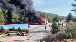 03:01Ağabeyi ve kuzeninin öldüğü kazada yaralanan Hamit, yaşam savaşını yitirdiİddiaya göre, dün saat 15.30’da Fethiye Otogarı'ndan Hatay’a gitmek üzere yola çıkan 34 FEU 896 plakalı yolcu otobüsü, Seydikemer ilçesi Bayır Mahallesi yakınlarında arızalandı. Bu sırada yolcu otobüsünün motor bölümünden alevler yükselmeye başlayınca, durumu fark eden şoför otobüsü yolun kenarında durdurarak yolcuları güvenli şekilde indirdi. Alevler kısa sürede tüm otobüsü sararken, durumun bildirilmesi üzerine bölgeye sağlık, jandarma ve Muğla Büyükşehir Belediyesi İtfaiye Daire Başkanlığı Seydikemer Grup Amirliği ekipleri sevk edildi. Olay yerine gelen itfaiye ekiplerinin yaptığı müdahale sonucu otobüsteki yangın söndürüldü. Olayda herhangi bir yaralı ya da can kaybı olmazken, yolcu otobüsü kullanılmaz hale geldi. Yangın yolcuların cep telefonu kamerası ile görüntülendi. Yolcular için Fethiye’den yeni bir otobüs geldiği ve Hatay'a devam ettikleri öğrenildi.