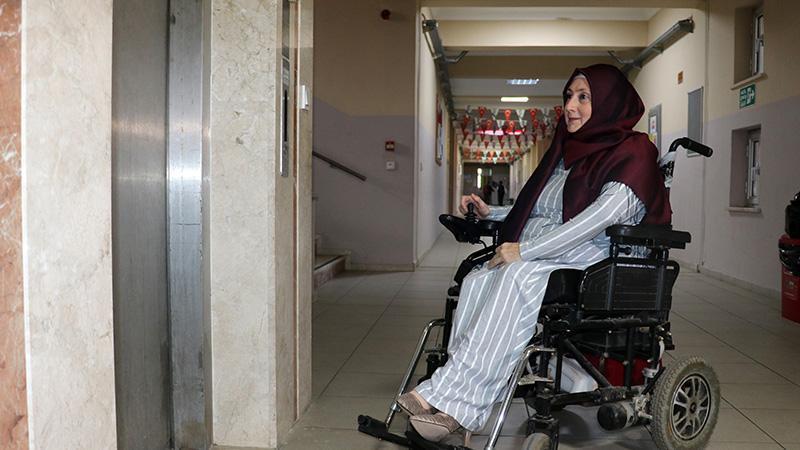 Yürüme engelli Zeynep öğretmen, asansörü 2 aydır arızalı okulda azmiyle ders veriyor