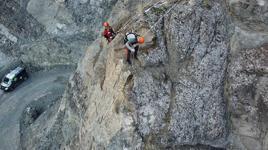 10:45Çanakkale Boğazı'nda hayalet ağ temizliği yapıldıYusufeli ilçesi Livane Mahallesinde ulaşım sağlanan kara yolu kenarındaki sarp yamaçlarda kaya düşmesi ve heyelan riskine karşı önlemler sıkılaştırılıyor. Özel ekipmanlı endüstriyel dağcılar tarafından tırmanılan yamaçlardaki kayalar temizlenerek ulaşım güvenliği sağlanıyor. Endüstriyel dağcılar, tırmandıkları yamaçlarda, riskli ve askıda kalan kayaları kontrollü olarak düşürüyor. Dağcıların çalışmaları dron kamerasına yansırken, Yusufeli Belediye tarafından başlatılan çalışmaların 1 hafta süreceği belirtildi. Yusufeli Belediye Başkanı Barış Demirci, "İlçemizin tüm mahallelerinde ulaşım güvenliğini sağlamak için gerekli çalışmaları kararlılıkla sürdürüyoruz. Serindere Yerleşkesi’nde başlattığımız bu çalışma, muhtemel kaya düşmelerinin önüne geçmek ve vatandaşlarımızın can güvenliğini sağlamak adına büyük önem taşıyor" dedi.