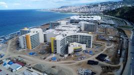 04:27Fizik tedavi hastalarıyla doktorlar basketbol maçı yaptıAkyazı Mahallesi'nde milyonlarca taş kullanılarak, deniz dolgusuyla elde edilen 400 dönümlük alanda inşa edilen Trabzon Şehir Hastanesi’nde çalışmalar sürüyor. 236'sı yoğun bakıma ait olmak üzere 900 yataklı olarak, 33 ameliyathane ve 300 poliklinikle hizmet vermesi planlanan hastanenin inşaatının yüzde 80’i tamamlandı. Karadeniz'in dalgalarından korumak için beton blokların yanı sıra milyonlarca tonluk taşların kullanılmasıyla, Türkiye'nin 783 bin 562 kilometrekare olan yüz ölçümünü genişleten ve pek çok odası deniz manzaralı olan projede çalışmalar, 24 saat esaslı sürdürülüyor. 285 bin metrekarelik alanda 4 bin 900 fore kazık uygulanarak, 750’nin üzerinde deprem izolatörüyle zemini güçlendirilen hastane, depreme dayanıklı olacak şekilde dizayn edildi. Onkoloji merkezi ve gen laboratuvarı gibi donanımların da yer alacağı hastane, altyapısının yanında nitelik ve donanımlı sağlık hizmetleriyle hastalara 5 yıldızlı otel konforunda hizmet sağlayacak. Planlandığında 1461 yatak kapasitesine çıkabilecek hastanenin büyük oranda tamamlanan bölümleri Demirören Haber Ajansı (DHA) kamerasıyla ilk kez görüntülendi.
