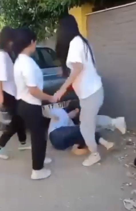 Kent merkezinde 3 genç kız, kendilerine küfrettiğini iddia ettikleri kızla tartıştı. Tartışmanın büyümesi üzerine grup, kızı yere düşürüp tekme ve yumruklarla darbetti. Bu sırada kızların arkadaşlarından biri de kavgayı cep telefonuyla görüntüleyip sosyal medyada paylaştı. (DHA)