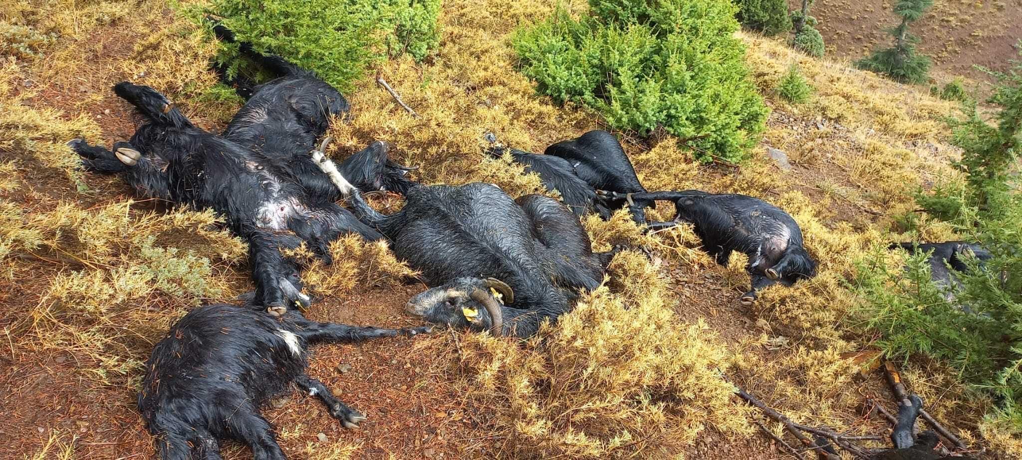 Feke’de yıldırım düşen ağacın altındaki 13 keçi telef oldu