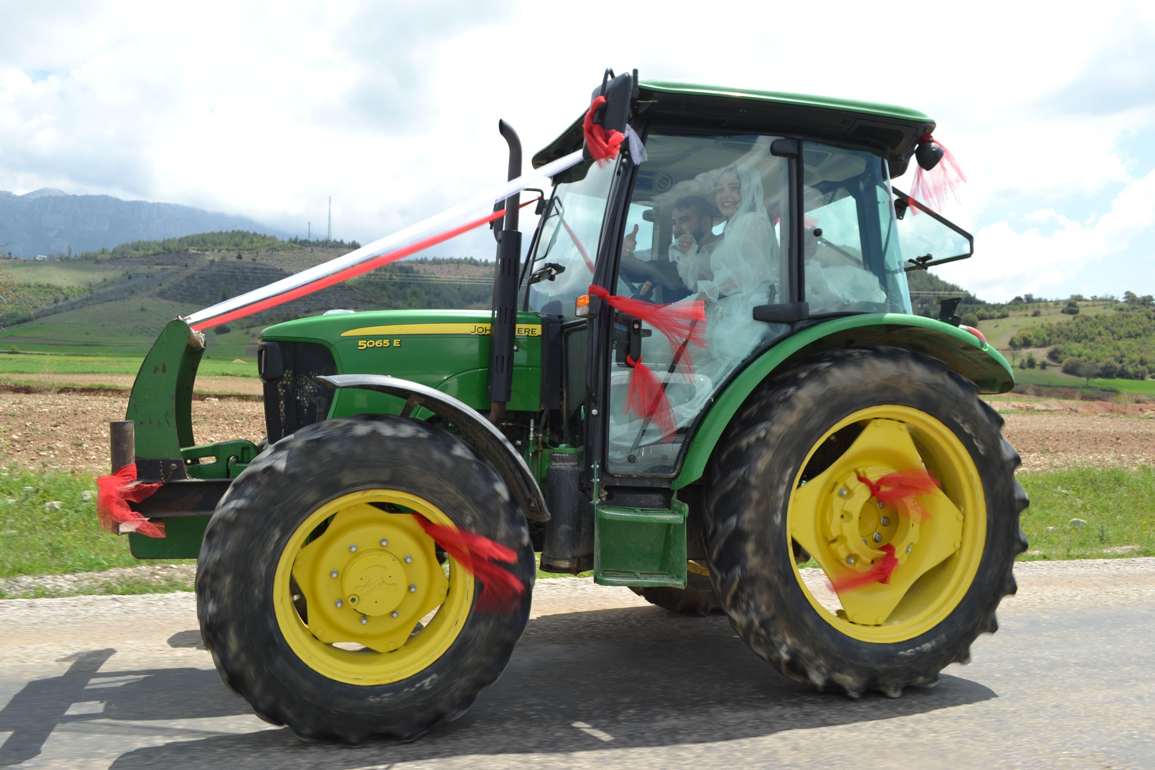 İlçedeki Tenkerli Mahallesi'nde yaşayan kepçe operatörü Ahmet Duru ile tiyatro oyuncusu Esra Şahin'ün düğünü, Camızgölü Şenlik Alanı'nda düzenlendi. Genç çift, Duru'nun çiftçi babasına ait özenle süslenmiş traktörle alana giriş yaptı. Traktörün ön kısmı kurdele ve bayrakla donatarak klasik bir gelin arabasına dönüştüren çifti davetliler alkışlarla karşıladı. Düğünde ilk olarak Kuran-ı Kerim okundu. Ardından yapılan dualarla çiftin mutluluğu için iyi dileklerde bulunuldu. Düğün, kıyılan nikah ve davetlilere yöresel yemek ikramıyla son buldu. (DHA)
