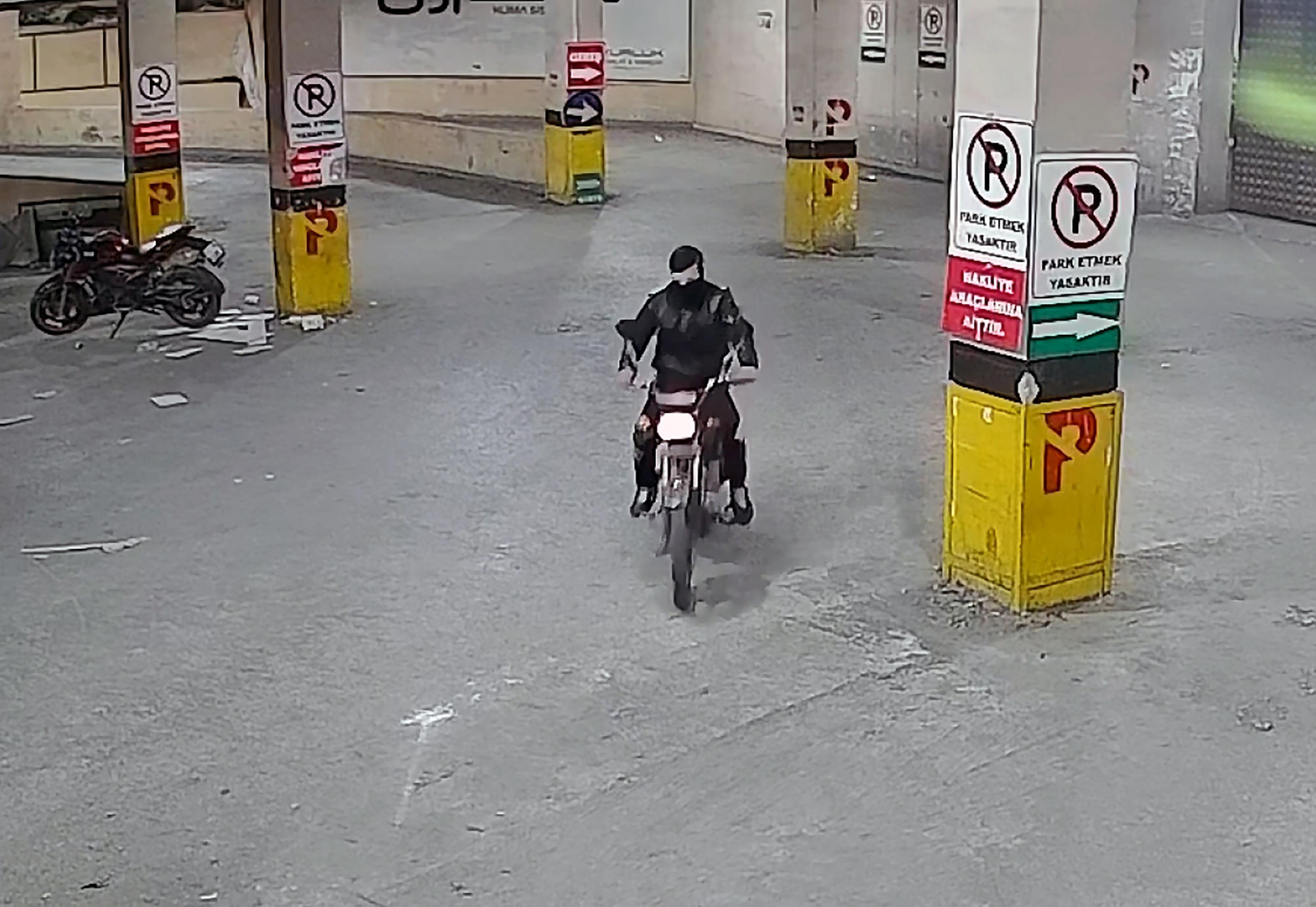 Olay, 5 Şubat’ta saat 04.30 sıralarında, Seyhan ilçesi Kocavezir Mahallesi’ndeki iş merkezinin katlı otoparkında meydana geldi. Yürüyerek otoparka giren H.A. ile A.U., 3’üncü katta park halindeki motosikleti düz kontak yaparak çalıştırdı. A.U. çaldığı motosikletle otoparktan ayrılıp, yaya olarak dışarı çıkan H.A. ile buluştuktan sonra bölgeden uzaklaştı. Şüphelilerin otoparka girdiği ve motosikletle ayrıldığı anlar ise güvenlik kamerasına yansıdı.