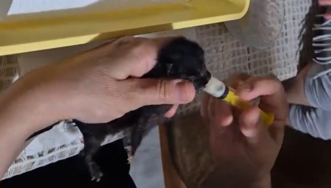 Sahiplendiği yavru kedileri, şırıngayla besliyor