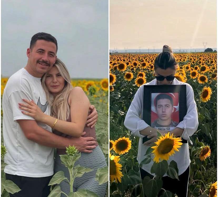 Şehidin eşi İlknur Yiğit, Kurban Bayramı'nda sosyal medyada yaptığı paylaşımla herkesi duygulandırdı. Şehit eşi ile fotoğraf çektirdiği ayçiçek tarlasına giden İlknur Yiğit, bu kez eşinin çerçeveli fotoğrafını kucağına alarak fotoğraf çektirdi. İki fotoğrafı sosyal medyadan paylaşan İlknur Yiğit, "Geçen yıl birlikte evimizde kurbanımızı keserken bu yıl ne birlikteyiz ne de evimizde. Sen hep huzurla kal sevgilim, her sefanda yanında olduğum gibi her cefanda da yanındayım. İyi ki senin eşinim, iyi ki varsın. Nerelerde olduğunu göremediğim o yerlerde ilk Kurban Bayramın mübarek olsun" dedi. (DHA)