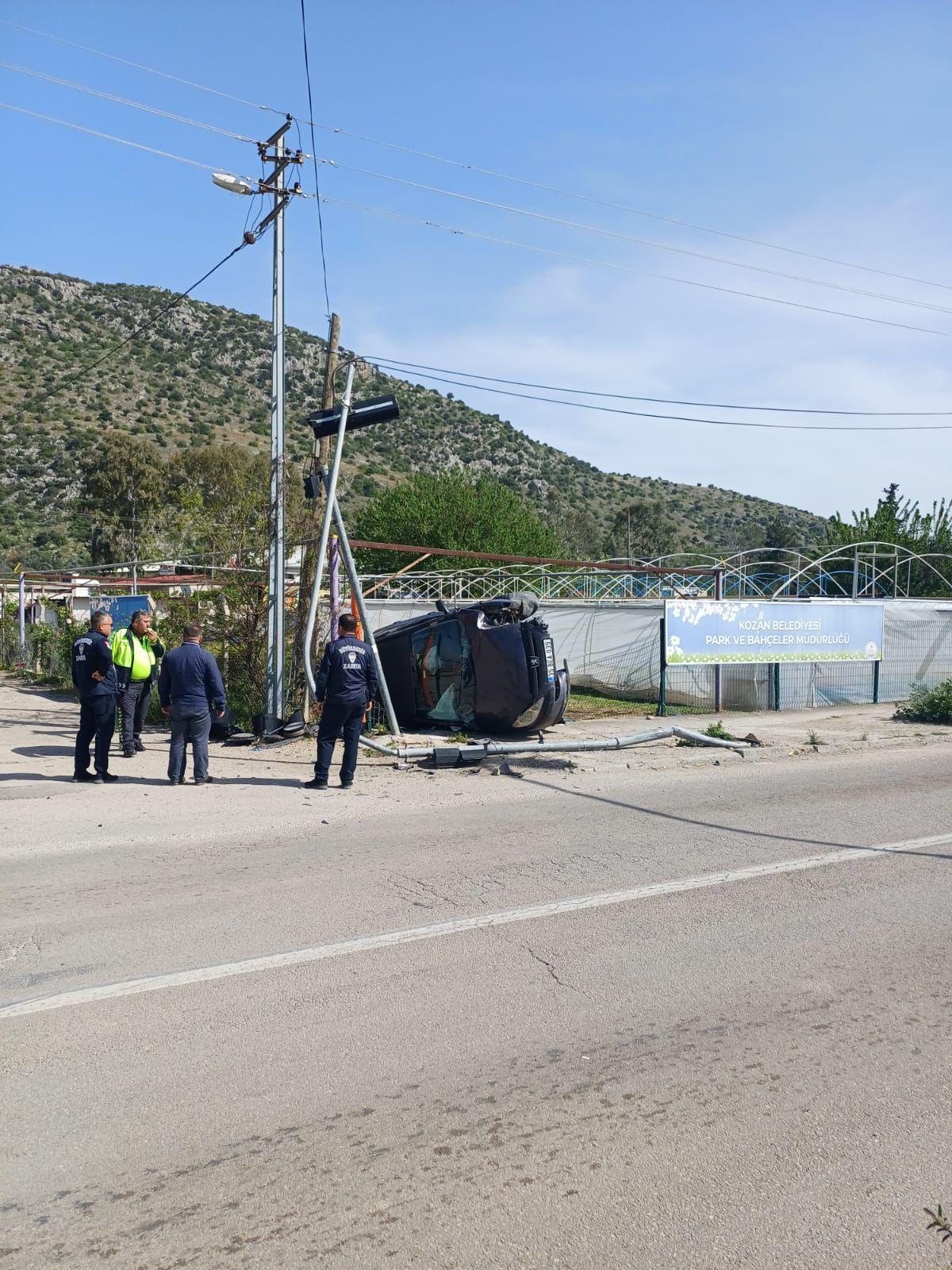 Kaza, öğle saatlerinde Kozan-Adana kara yolunda meydana geldi. Sürücüsünün ismi öğrenilemeyen 35 BEA 039 plakalı otomobil kontrolden çıkarak kavşaktaki trafik ışıklarına çarptı. Çarpmanın etkisiyle devrilen otomobilin sürücüsü yaralandı. Çevredekilerin ihbarıyla kaza yerine sevk edilen sağlık ekipleri, yaralı sürücüyü ambulansla hastaneye kaldırdı. Kazayla ilgili inceleme başlatıldı. (DHA)