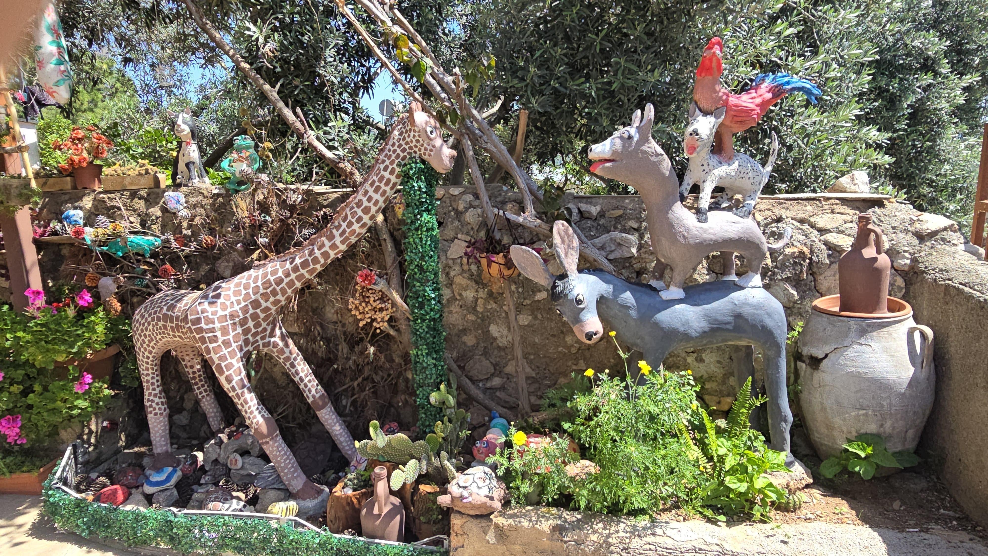 Emekli el işi öğretmeni, ürettiği objeleri bahçesinde sergiliyor