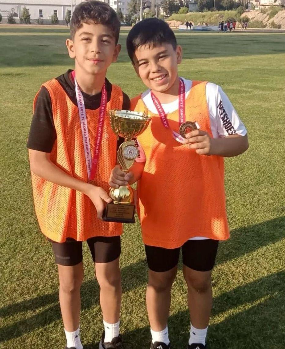 ADANA, (DHA)-ADANA'da 5x80 bayrak koşusunda ortaokul öğrencileri Efe Ertok ile Mustafa Selim Demir, rakiplerine fark atarak il birincisi oldu.