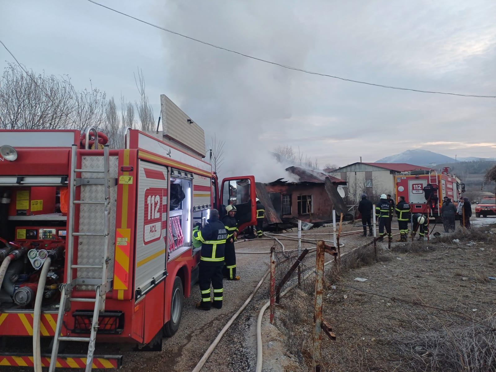 Tufanbeyli ilçesinde Mehmet Alyörük'e ait ahşap evde gece saatlerinde henüz bilinmeyen bir nedenle yangın çıktı. İhbar üzerine bölgeye sevk edilen itfaiye ekiplerinin müdahalesiyle yangın söndürüldü. Ancak ev kullanılmaz hale geldi. Yangının çıkış nedeninin belirlenmesi için inceleme başlatıldı. (DHA)