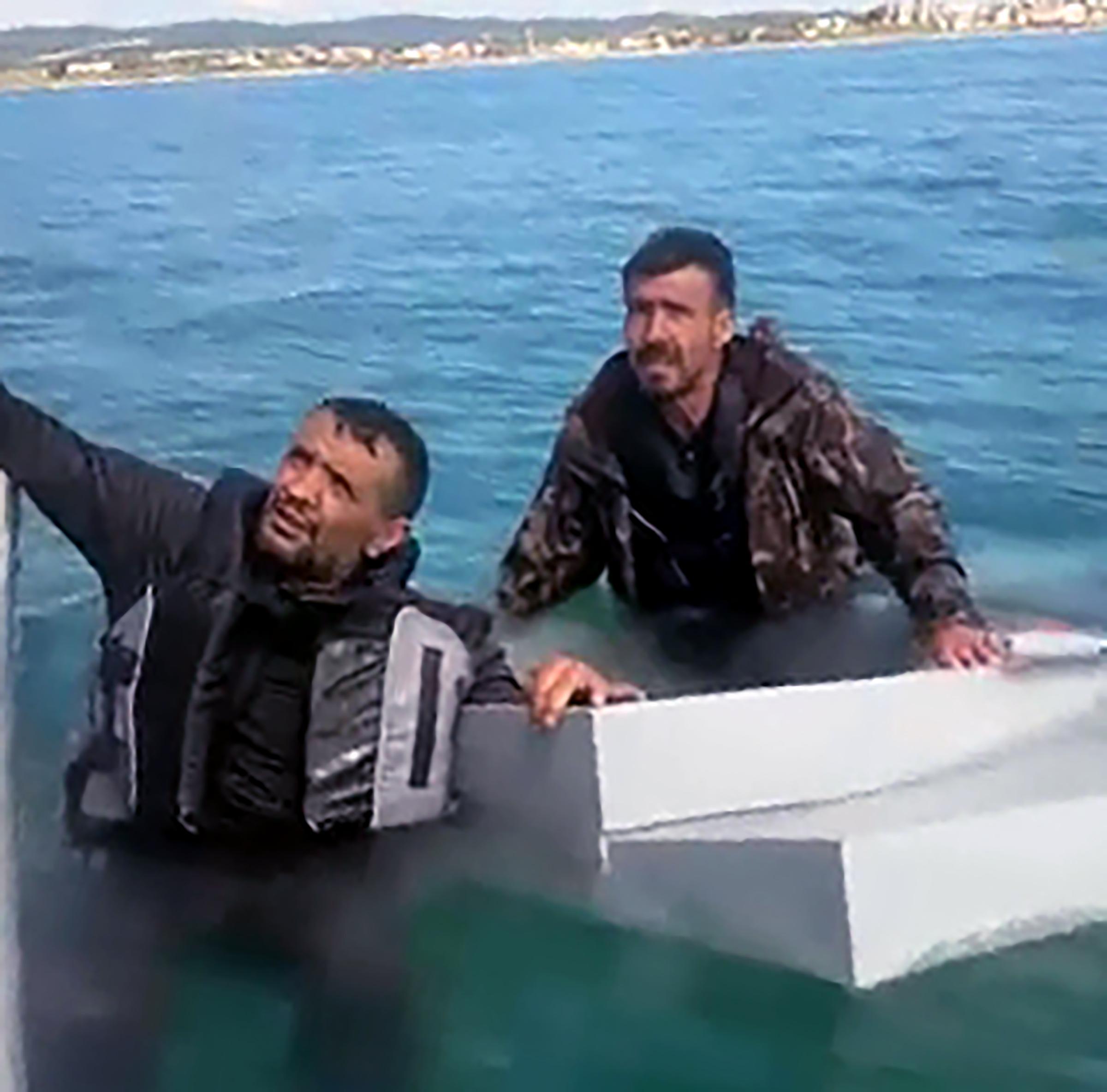 İlçede botla denize açılan balıkçılar, öğle saatlerinde suda çırpınıp, bağırarak yardım isteyen 3 kişiyi fark edince yanlarına gitti. Denize açıldıkları tekne, su alınca denizde mahsur kalanlar, balıkçılar tarafından bota alındı. Balıkçıların kıyıya götürdüğü 3 kişi, çağrılan ambulansla tedbir amaçlı hastaneye kaldırıldı. O anlar balıkçılar tarafından cep telefonuyla kaydedildi. (DHA)