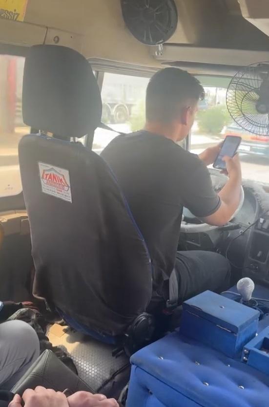 Dolmuş şoförü, direksiyon başında telefonla oynayıp sigara içti