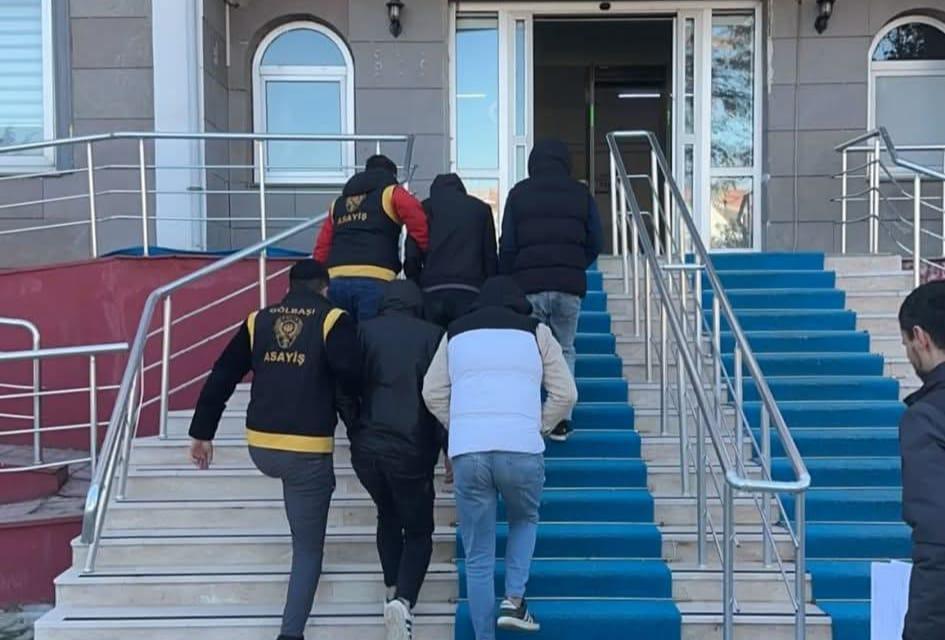İlçe Emniyet Müdürlüğü Asayiş Büro Amirliği ekipleri ilçede 4 ayrı iş yerinden hırsızlık ihbarı üzerine harekete geçti. Çevredeki güvenlik kameralarını inceleyen polis ekipleri kimliklerini belirlediği, A.B., M.Y., S.Ç. ve M.S.'nin adresine operasyon düzenledi. Şüpheliler, çaldıkları malzemelerle birlikte yakalandı. Emniyetteki işlemlerinin ardından sevk edildikleri adliyede mahkemeye çıkarılan şüpheliler, tutuklanarak cezaevine gönderildi. (DHA)
