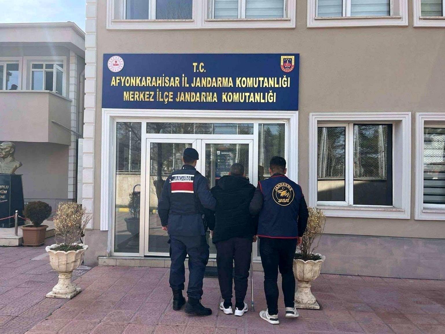 Afyonkarahisar İl Jandarma Komutanlığı ekipleri il merkezinde aranan kişilerin tespiti ve yakalanmasına yönelik çalışmalarını sürdürdü. Bu kapsamda, 'kasten öldürme', 'birden fazla kişi ile suç örgütüne yarar sağlamak amacı ile yağma', 'birden fazla kişi ile tehdit', 'bilişim sistemleri banka veya kredi kurumlarının araç olarak kullanılması suretiyle dolandırıcılık', 'kamu görevlisinin resmi belgede sahteciliği' suçlarından hakkında 46 yıl 6 ay hapis cezası bulunan T.G. ile 'kasten yaralama' suçundan hakkında 16 yıl 1 ay 15 gün kesinleşmiş hapis cezası bulunan D.K. yakalandı. 2 hükümlü de çıkarıldığı mahkemece tutuklandı. (DHA)