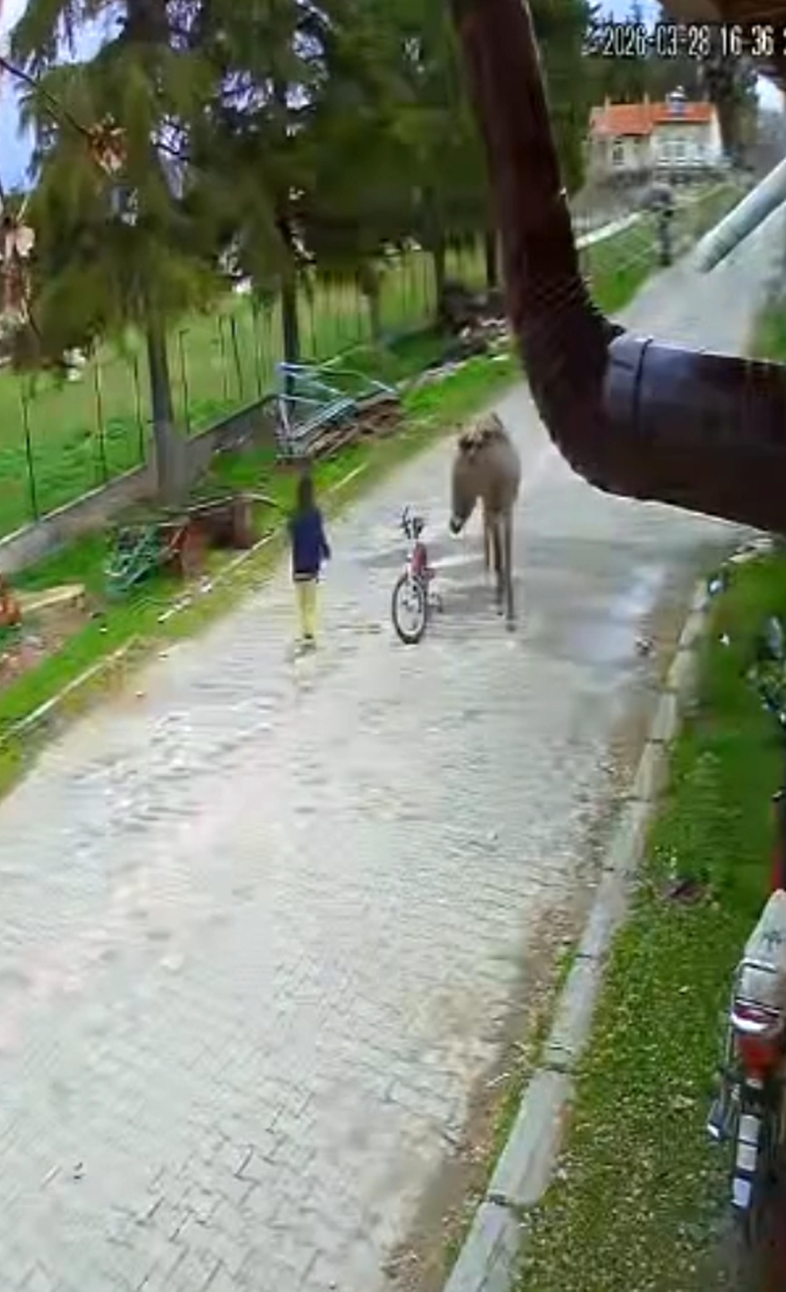 Evinin önünde oynayan çocuğa eşek saldırdı; o anlar kamerada