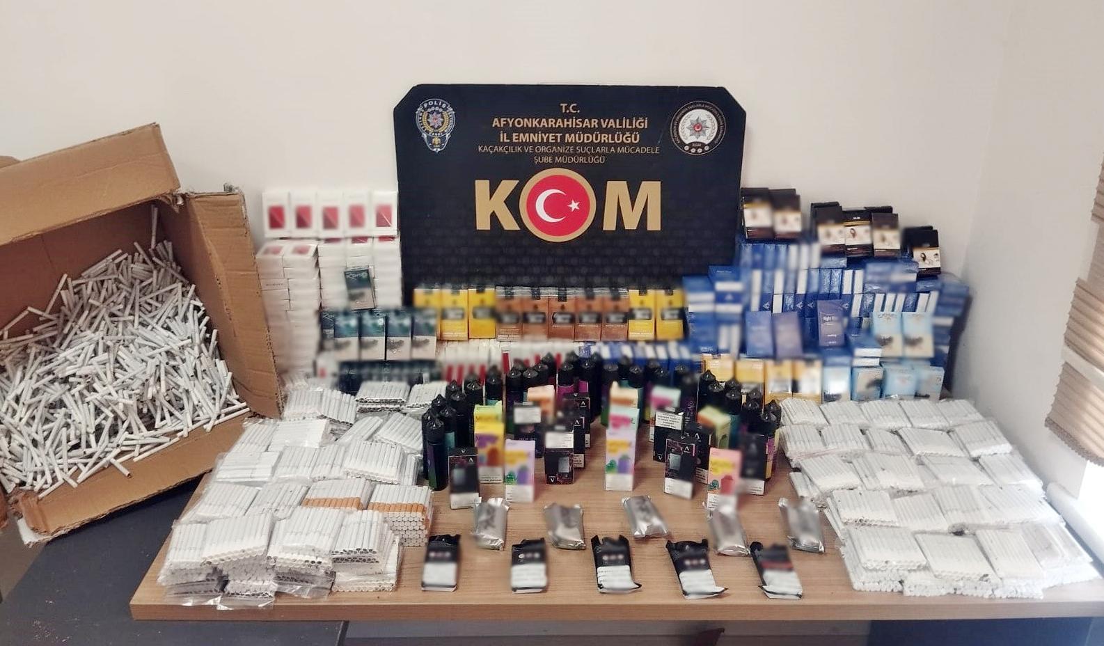 Afyonkarahisar İl Emniyet Müdürlüğü görevlilerince kaçakçılık faaliyetlerinin önlenmesi ve tespitine yönelik yapılan çalışmalar kapsamında Işıklar beldesinde 2 iş yerinde arama kapsamında 1920 doldurulmuş makaron, 11200 sahte bandrollü boş makaron, 20 kilo nargile kömürü ele geçirildi. Olayla ilgili 2 şüpheli hakkında 'Kaçakcılıkla mücadele kanununa muhalefet' suçundan adli işlem başlatıldı. (DHA)